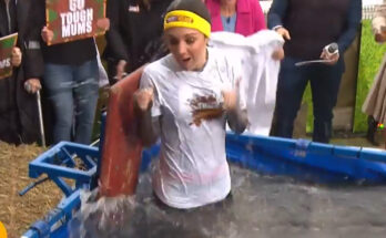What makes this moment even more entertaining is Helen’s reaction. Instead of getting upset or embarrassed, she handles it like a true professional. Standing there dripping wet, she laughs at the situation and embraces the moment, instantly turning the unexpected mishap into the highlight of the show. That kind of good-humored attitude is exactly why clips like this spread so quickly across social media. 😄
