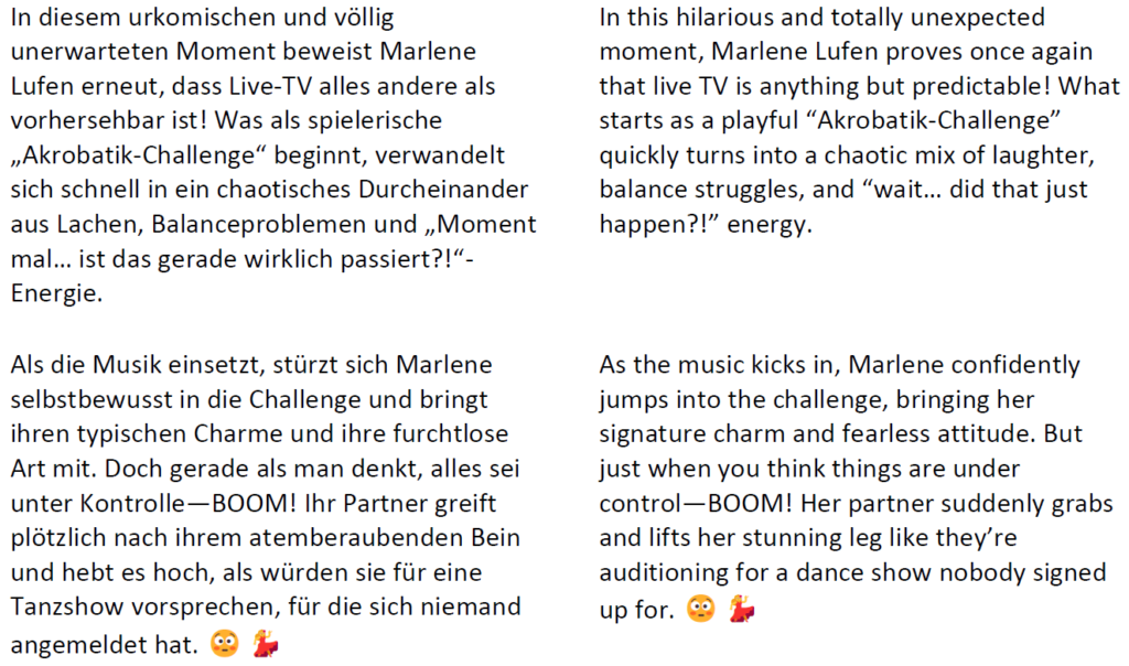 đŸ˜±đŸ”„ Marlene Lufen, hat er ihr Bein WIRKLICH so angehoben?! // Marlene Lufen, Did He REALLY Lift he Leg Like That?!