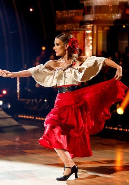 The moment the results are announced, Helen Skelton doesn’t just react — she LAUNCHES. We’re not talking about a polite little clap or a graceful smile. Oh no. This is full-on, pure joy, springs-in-her-shoes, can’t-contain-it energy! It’s like someone replaced her dance training with a secret trampoline session backstage.