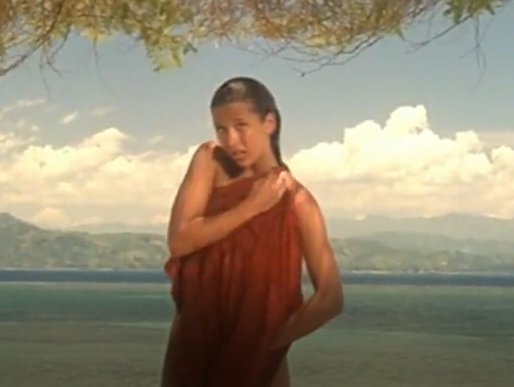 When she leans closer, hovering above him, the moment is suspended in time. Their eyes speak before their lips ever could. There is tension — not dramatic or loud — but intimate and fragile. It is the tension of two souls wondering: Is this real? Or is this just a fleeting dream carried by the sea breeze?